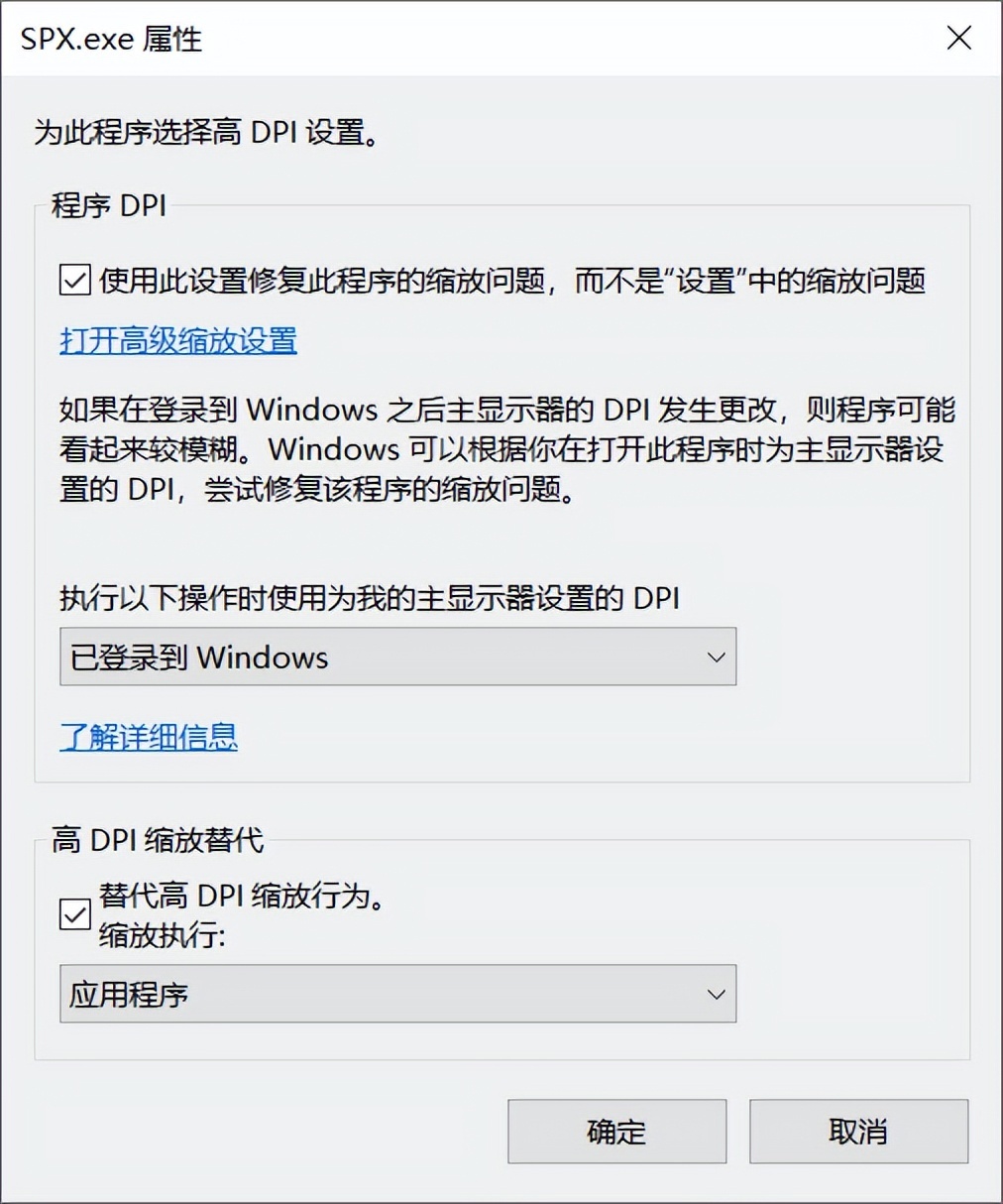 注意:由于「SPX」默认不支持高分屏,区域截图可能会有点问题,如果你是高分屏的显示器话,需要在 SPX.EXE 右键属性 → 兼容性 → 勾选 DPI,然后重启软件就可以了。