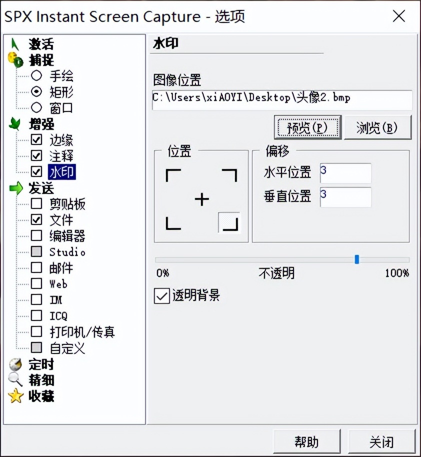注意:6.0 版本只支持 BMP 格式的图片水印,7.0 版本则支持 PNG、BMP、JPG 等多种格式。