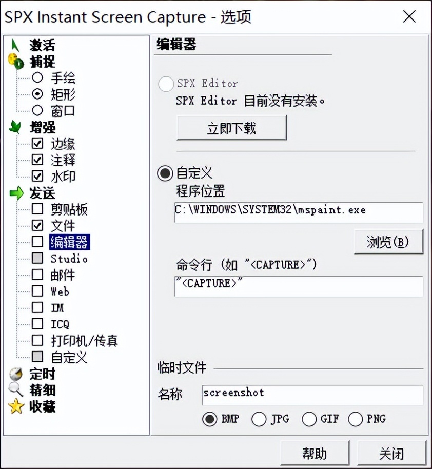 这款「SPX」截图工具绿色单文件,体积只有 600 KB 左右,运行后会自动隐藏到任务栏右下角,然后通过快捷键唤出来截图。