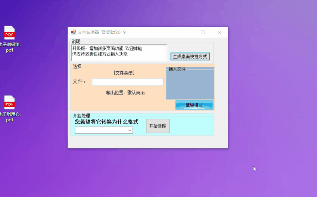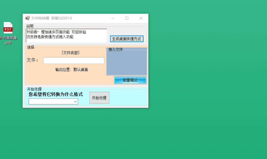 它使用容易,将需要转换的 PDF 文件和 Word 文件拖到软件的桌面快捷方式上即可。