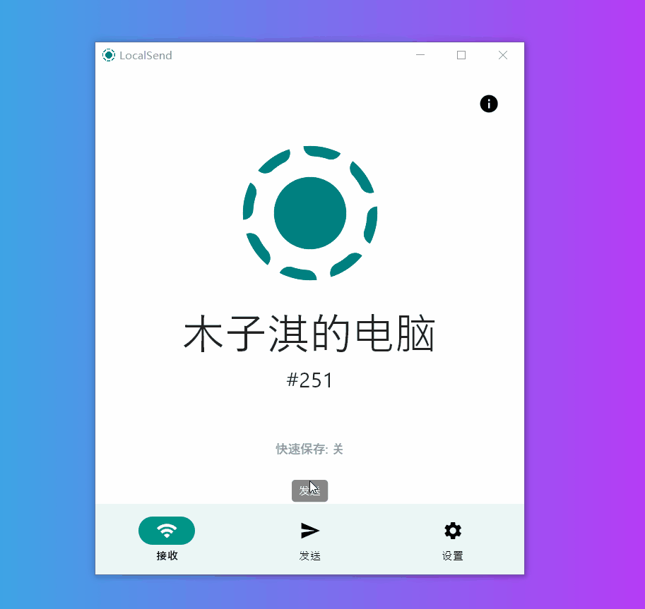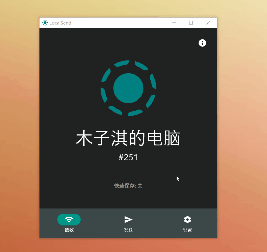 它支持快速保存功能,也就是自动接受所有文件传输请求,当开启这个功能,局域网的所有设备都可以向你发送文件。