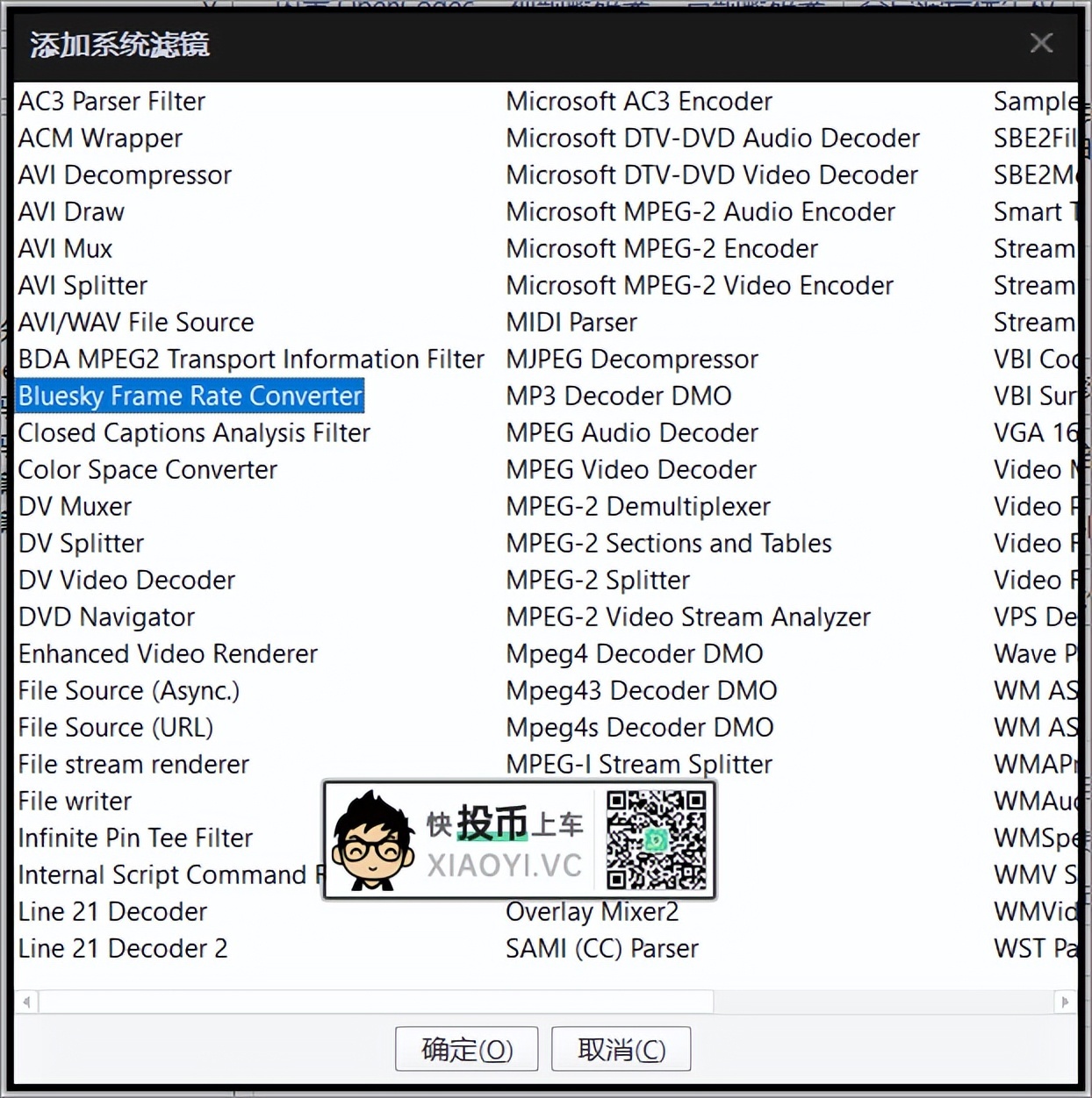 2.在系统滤镜库里找到 “Bluesky Frame Rate Convertera” 选中,点击确定。