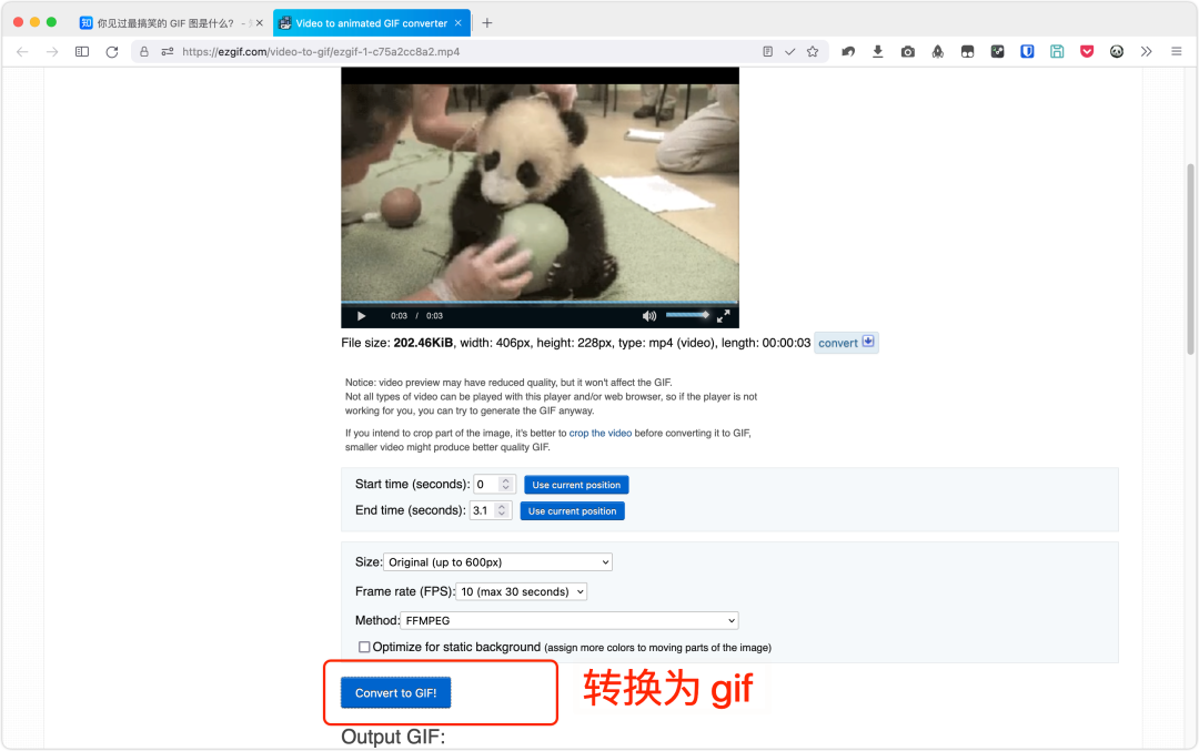 知乎上的 GIF,看似是图片,其实是视频,使用网站 EZGIF 的一键转换功能,即可将图片保存为 GIF。