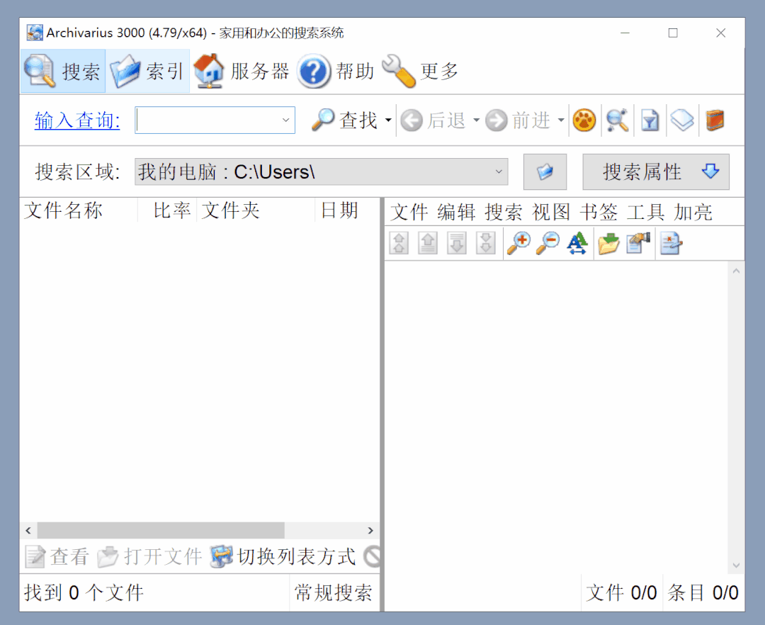 如果觉得TextLocator可以搜索的内容还不够,你还需要搜索像是epub、mobi等格式的文档,那么可以整一个Archivarius3000,它虽然是一款比较上古的软件。
