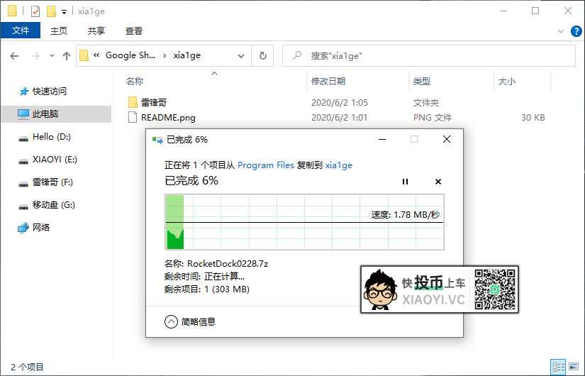 速度方面,因为服务器在国外,加上需要404工具,速度不算很快,直接从本地磁盘复制文件过去,速度在 1MB/s 左右,也就是上传速度。