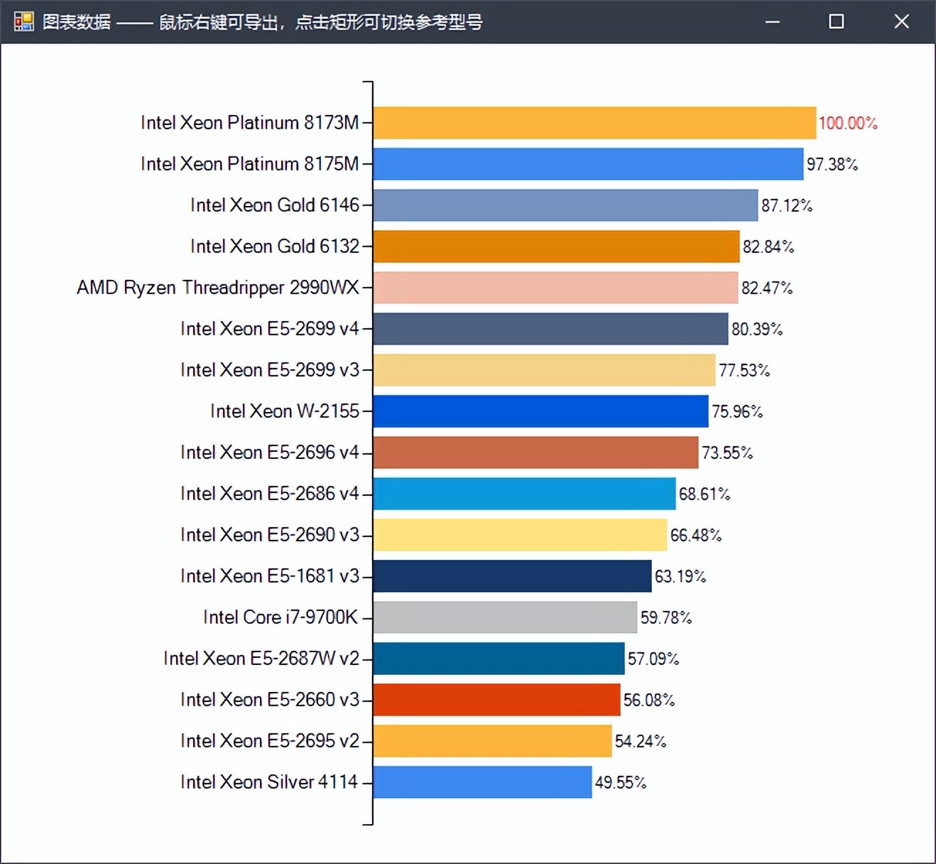 「电脑硬件性能对比」界面虽然有点土味,但是满满的CPU/显卡数据量,软件可以获取最新的数据。