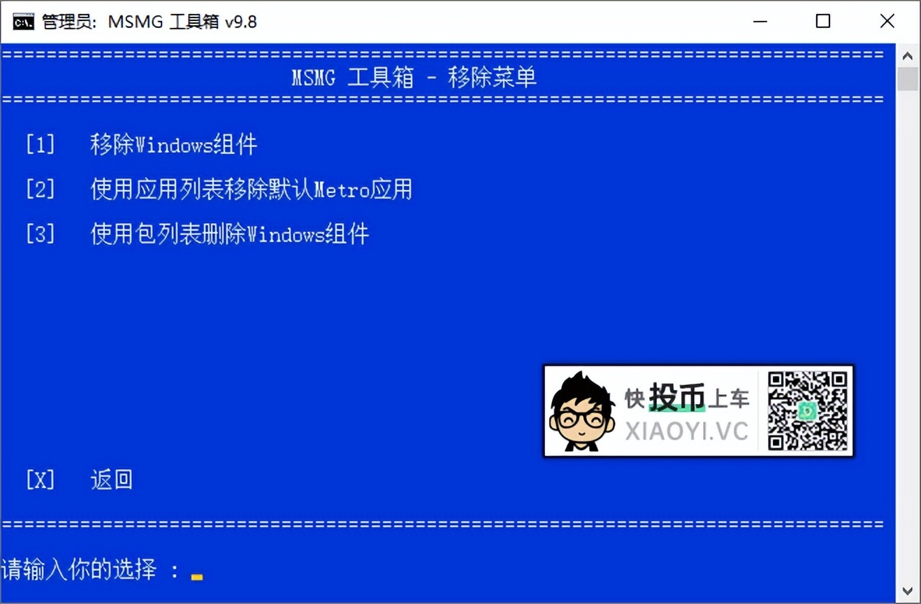 进入移除菜单,可以选择移除Windows组件、移除应用商店应用、使用包列表删除Windows组件。