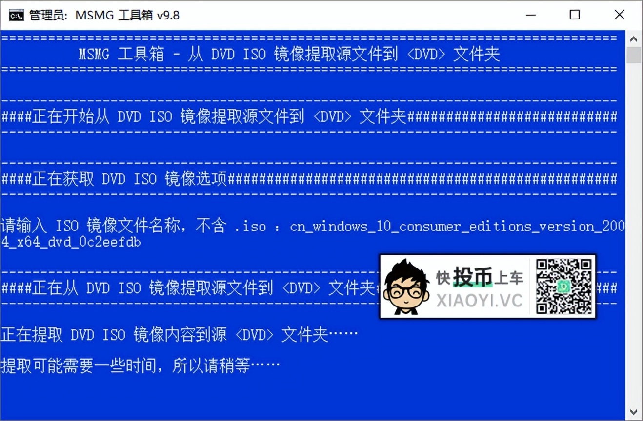 输入镜像的名称获取镜像,注意不需要输入.iso,接着耐心等待提取镜像文件。