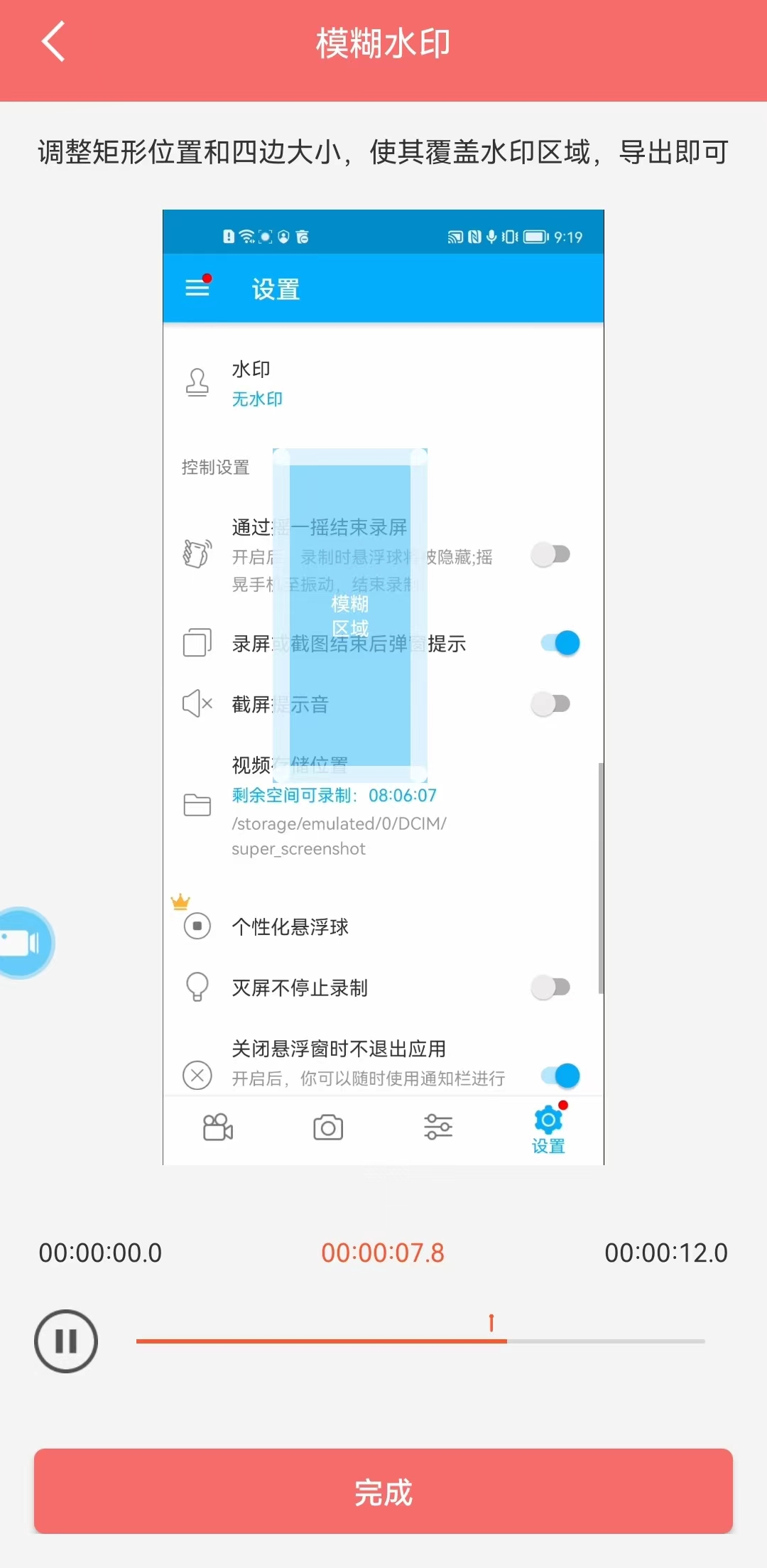 超级录屏功能很多,除了基本的录屏,还支持截图、桌面涂鸦、定时录制、直播、变声、个性化水印等等。
