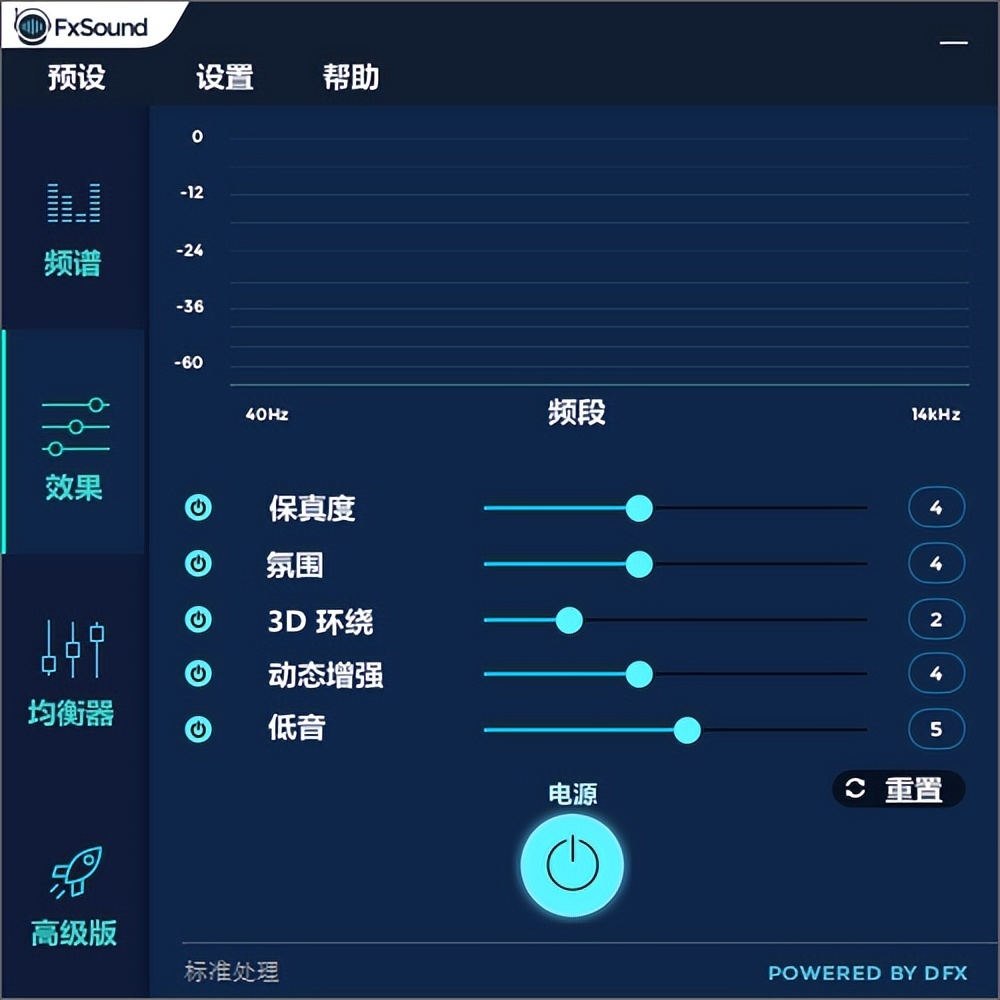 如果你不会调整音效「FxSound Enhancer」已经内置多种预设,包含:3D环绕音响、超重低音、立体声音场、高保真还原、动态增强、为耳机优化、音谱分析器等。