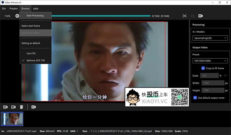 然后菜单点击Process → Start Processing 开始转换。最下面也可以选择使用CPU方式来处理,默认是选上显卡。
