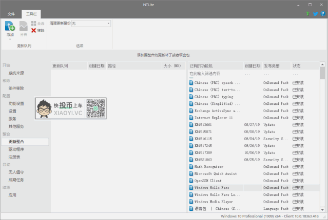 8.可以整合或移除补丁包/语言包。「Nlite」提供了在线更新补丁包下载,可以让你方便的整合最新补丁。