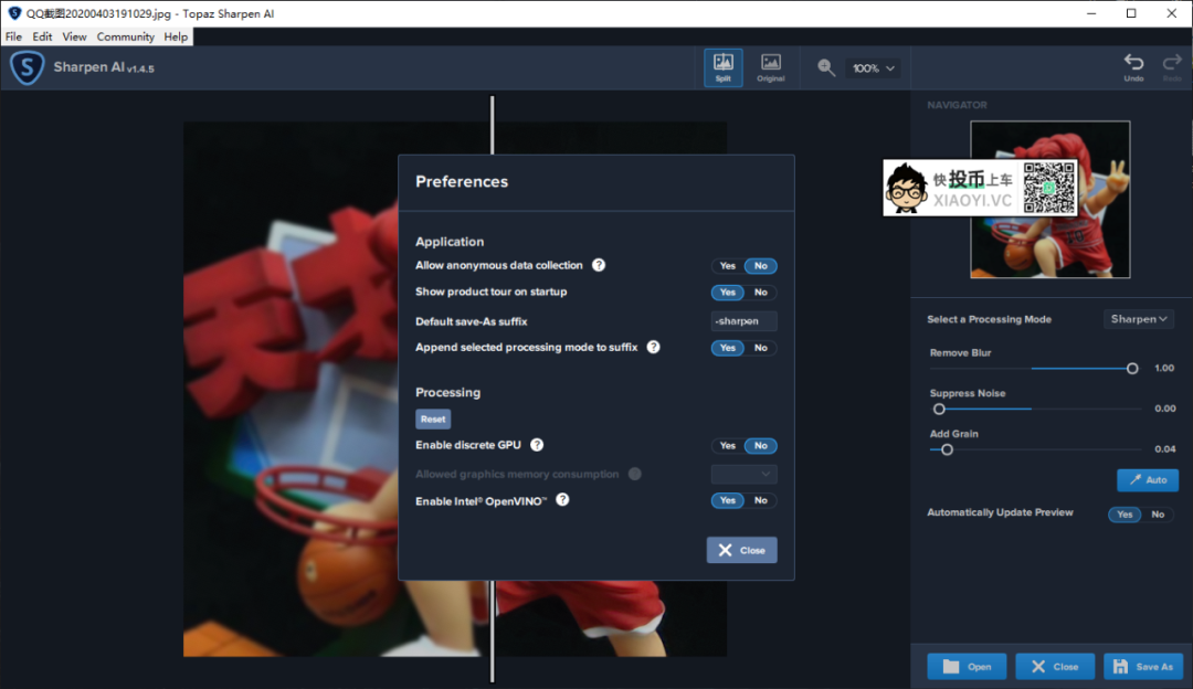 「Topaz Sharpen AI」对电脑硬件要求也不算很高,显卡比较给力的用户,可设置采用GPU的方式来处理照片。