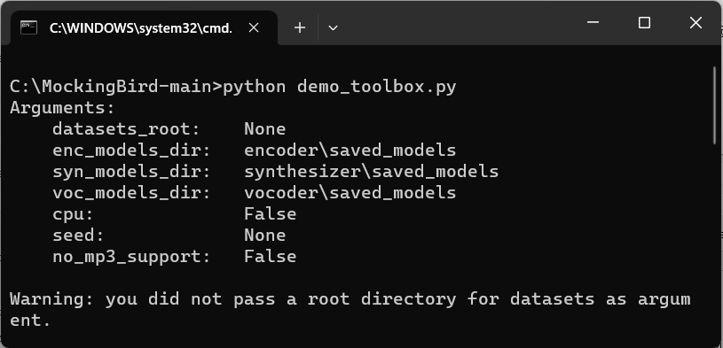 MockingBird 是一款开源软件,下载解压压缩包之后,双击运行「运行.bat」 会打开 cmd,稍等几秒待命令运行完毕,软件主界面框就会自动开启。