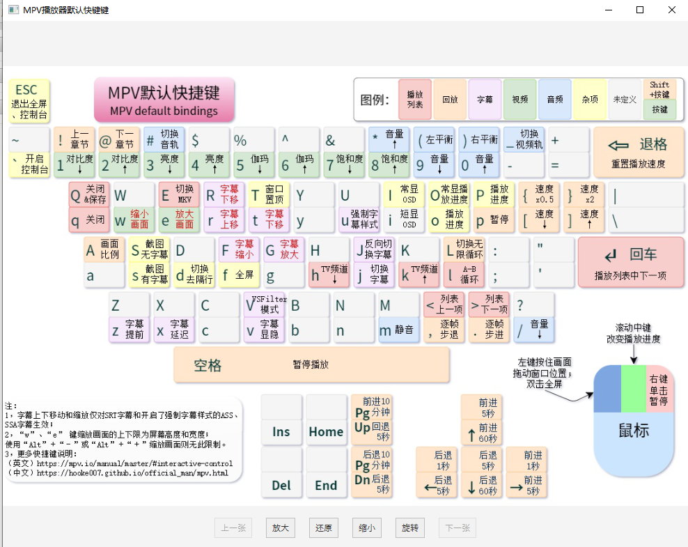 mpv 播放器功能非常全面,可以点设置-播放器-mpv 默认快捷键说明,查看具体功能快捷键。