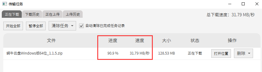对于大文件,下载速度 1MB/S 不到,最近,阿里云盘 PC 客户端下载就更慢了。而使用蜗牛云盘则可以达到 38.7MB/S,速度天差地别。