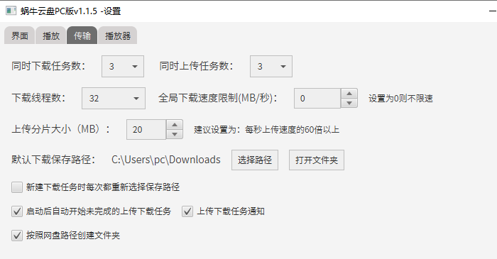 总的来说,蜗牛云盘在下载和上传有很大优势,在视频播放优化上也不错,并且是更加简洁,但在功能上还是有很多不足之处,比如文件没有全选功能,不能以视图方式显示,没有分享功能…..但作者更新还是很频繁,相信功能是会越来越完善。