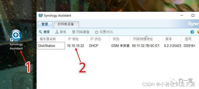 - 以后建议下载群晖的 Synology Assistant 工具,打开后,可以看到局域网中的NAS信息