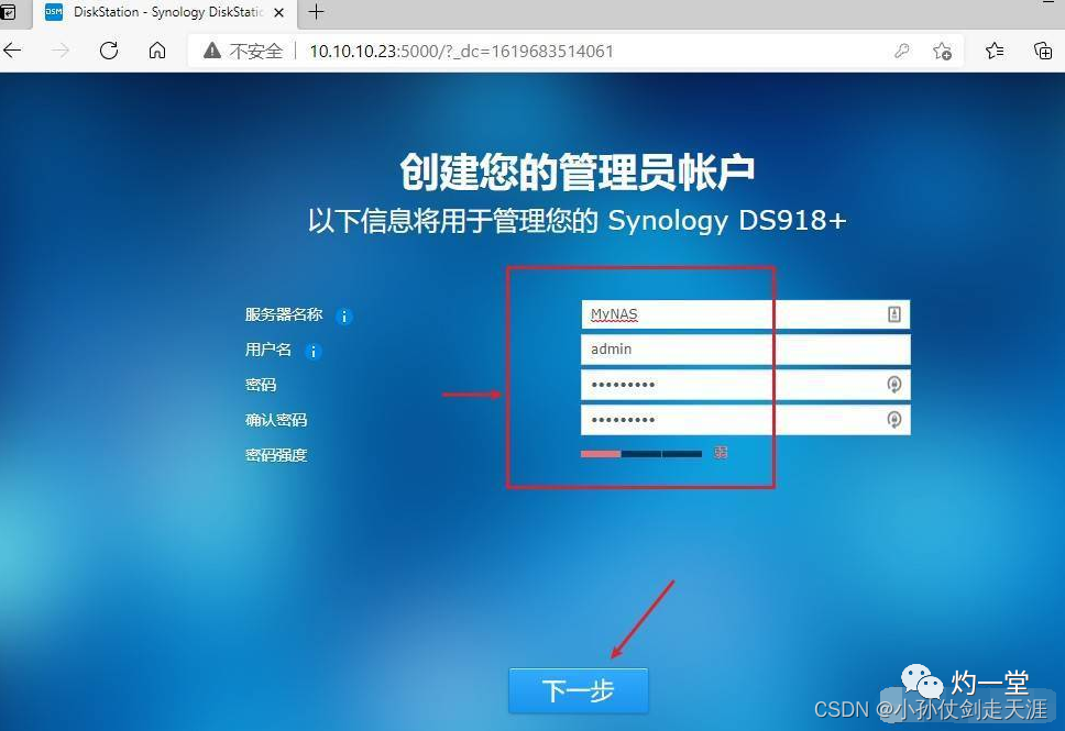 - 我们的黑群晖NAS系统,已经安装完成了!我们简单设置一下这台服务器的名称、用户、密码:
