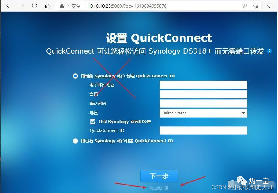 - 然后在QC外网访问页面的时候,我们点击最下面的跳过:我们是黑群,不需要用官方的QC,后续也有其它的方式进行外网访问。