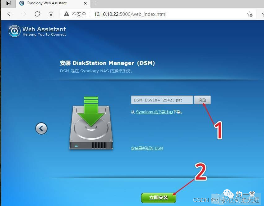 - 点击手动安装系统后,我们点击浏览,选择到我们下载的 .pat 结尾的这个系统文件。
