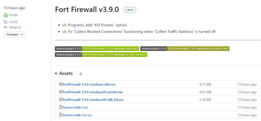 当然,需要正常运行 Fort Firewall 这款软件,对系统和运行库和也有一定的要求,作者一共提供了三个版本,Win10 以下系统的用户只能使用 FortFirewall-windows-x86 版本。