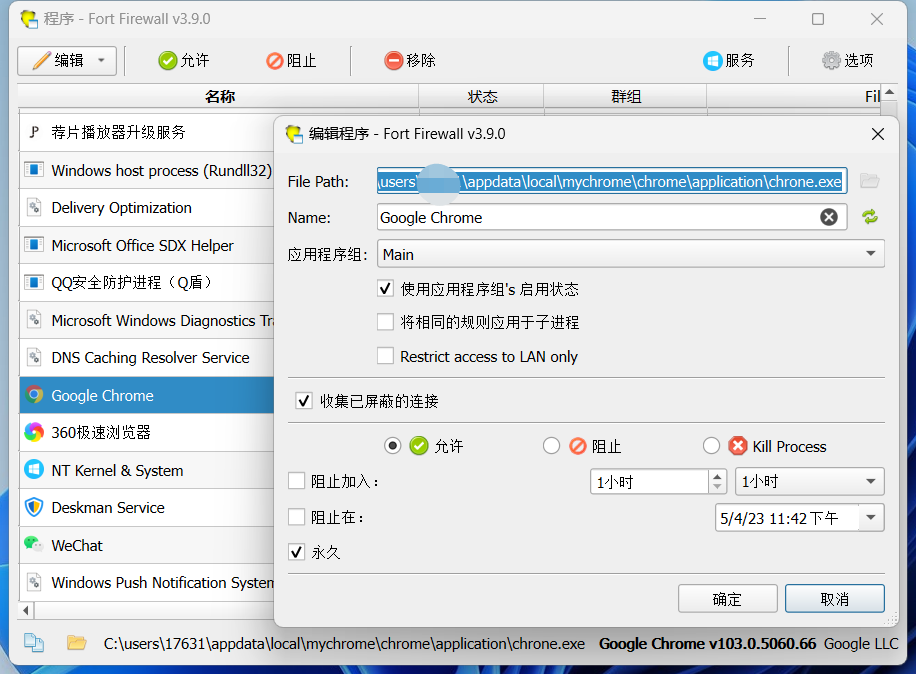 如果在运行列表中没有我们需要的禁网程序,也可以在左上角的编辑入口手动编辑程序路径。
