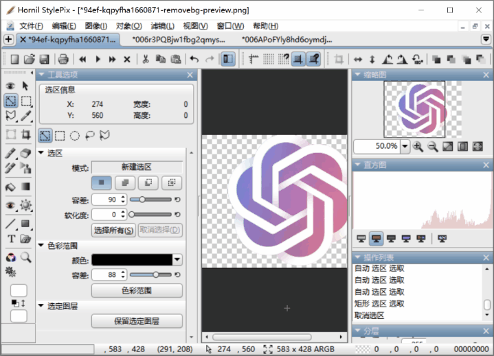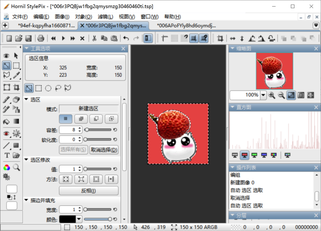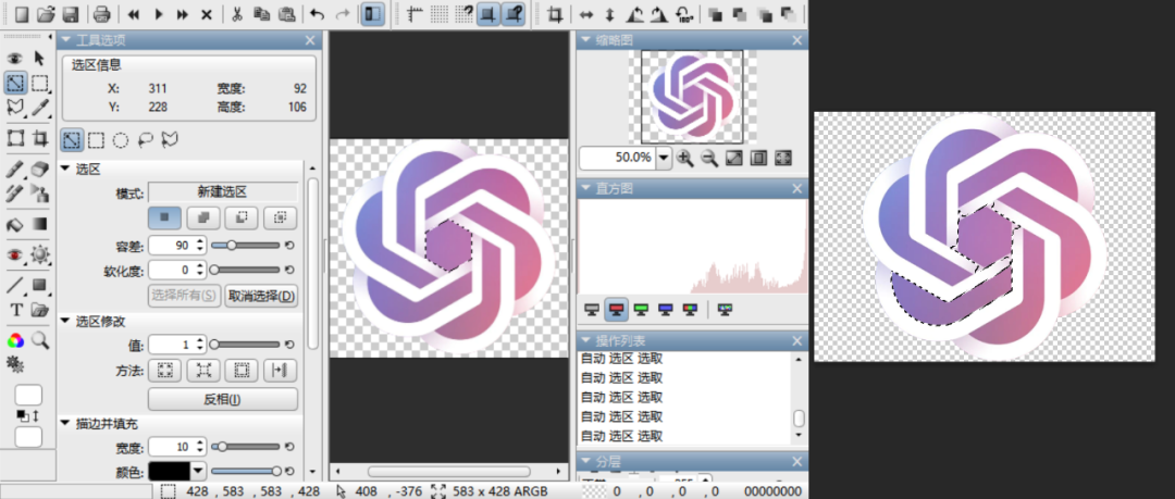 在有的功能上来说,有些简单的配置反而比较趁手,像是自动选区(魔棒工具)同样的容差,其他的不动,选择的区域StylePix更加准确,当然PS还有对象和快速选择工具可以吊打StylePix,但是对于一个轻量级别的编辑器,还是可以了。