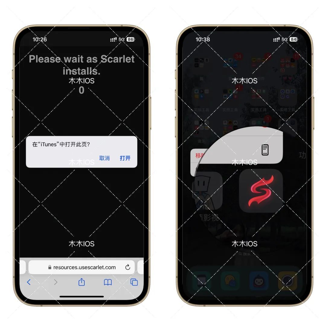这里会跳转页面,如果出现验证你是不是人类的话,你不要管,返回到四个按钮页面,重新点击直接安装,等他倒数几秒出现“在 iTunes 中打开此页” 的提示,点击打开即可安装了。