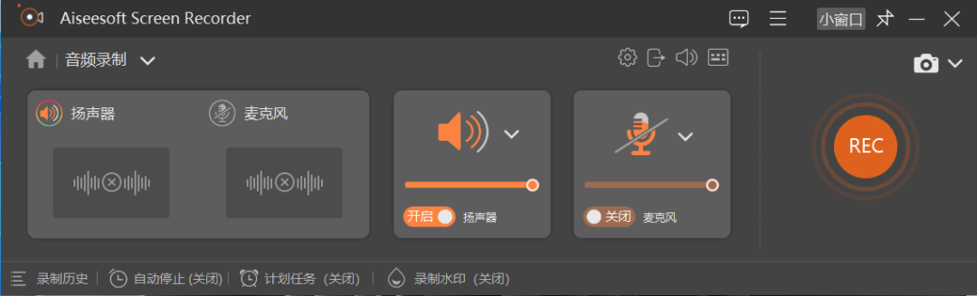 音频录制就比较简单了,选择好需要录制的声音来源就可以。
