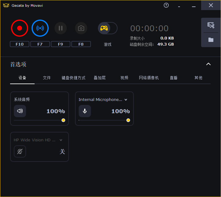 与其它录屏软件基本相同,Movavi Gecata 可以录制系统音频和麦克风声音,也能录制同时录制摄像头。