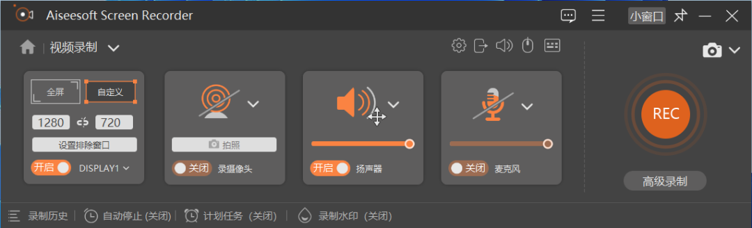 录制视频也即是最简单的桌面录制模式,开启录制之前,需要设定录制范围、是否录制声音、是否录制摄像头,点击右侧 REC 键开始录制。