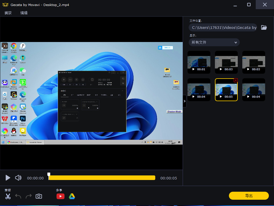 关于已经录制生成的文件,软件自带简单的剪切功能,可以对视频进行最简单的基础剪切。
