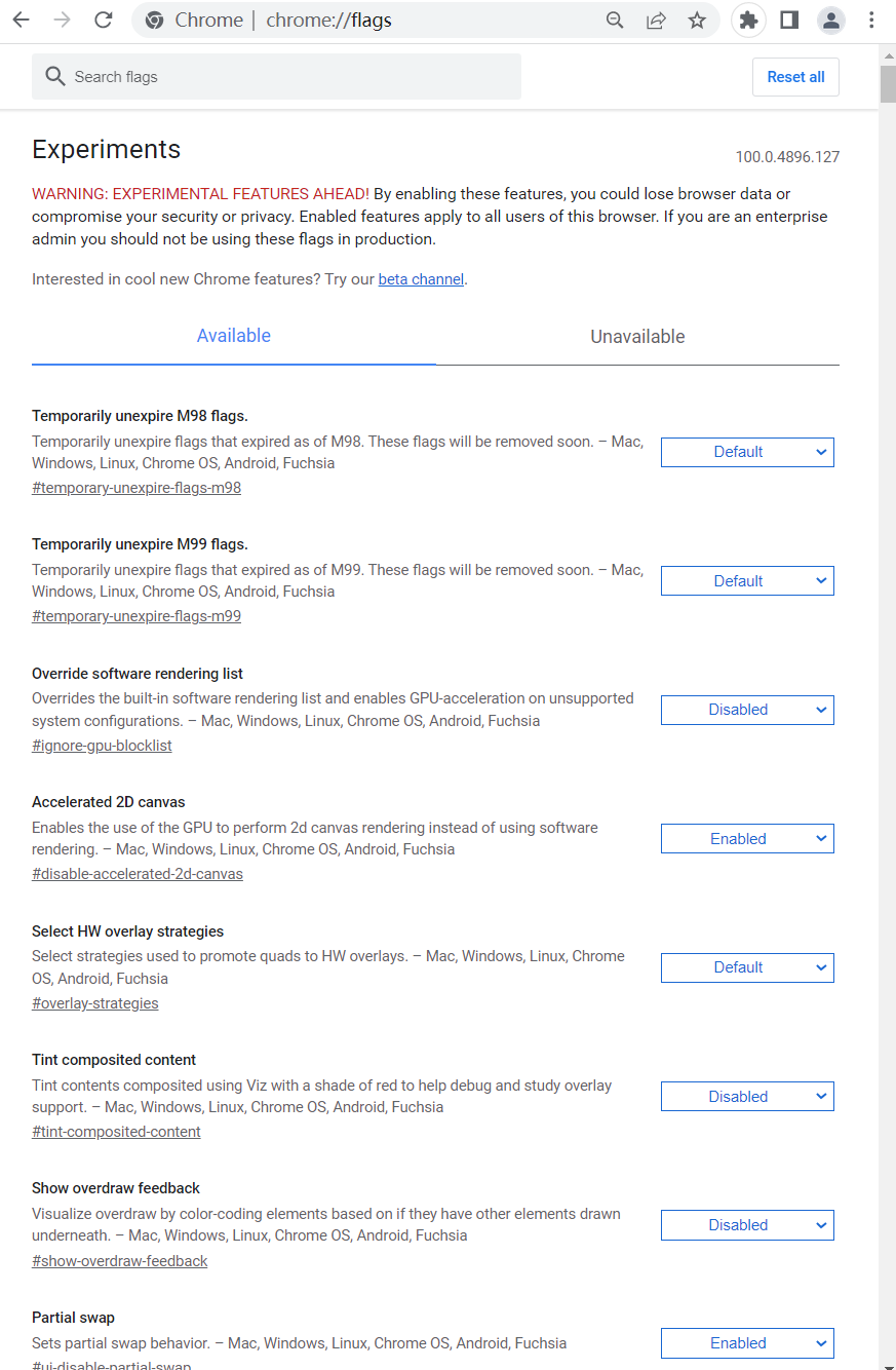 在一些功能还未调教完成之前,用户可以开启这其中的一些chrome浏览器的实验特性,定制不同的需求。