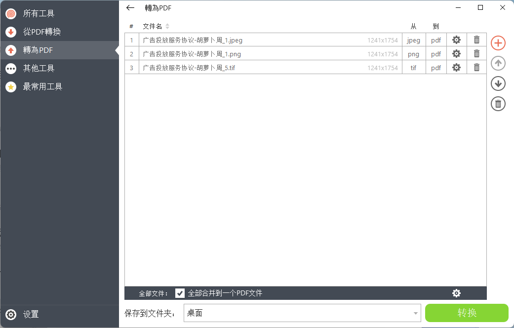 如果所有文件单独转换,那么不勾选底部的选项,否则默认全部合并到一个 PDF 文件。