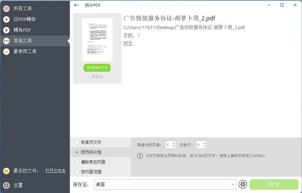 合并是将多个 PDF 合并成一个,而拆分则是将单个 PDF 文件拆分为多个,拆分仅支持单个文件,不支持批量操作。