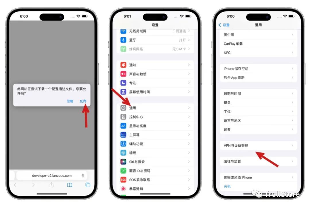 然后点击允许,打开手机的设置,通用,设备管理