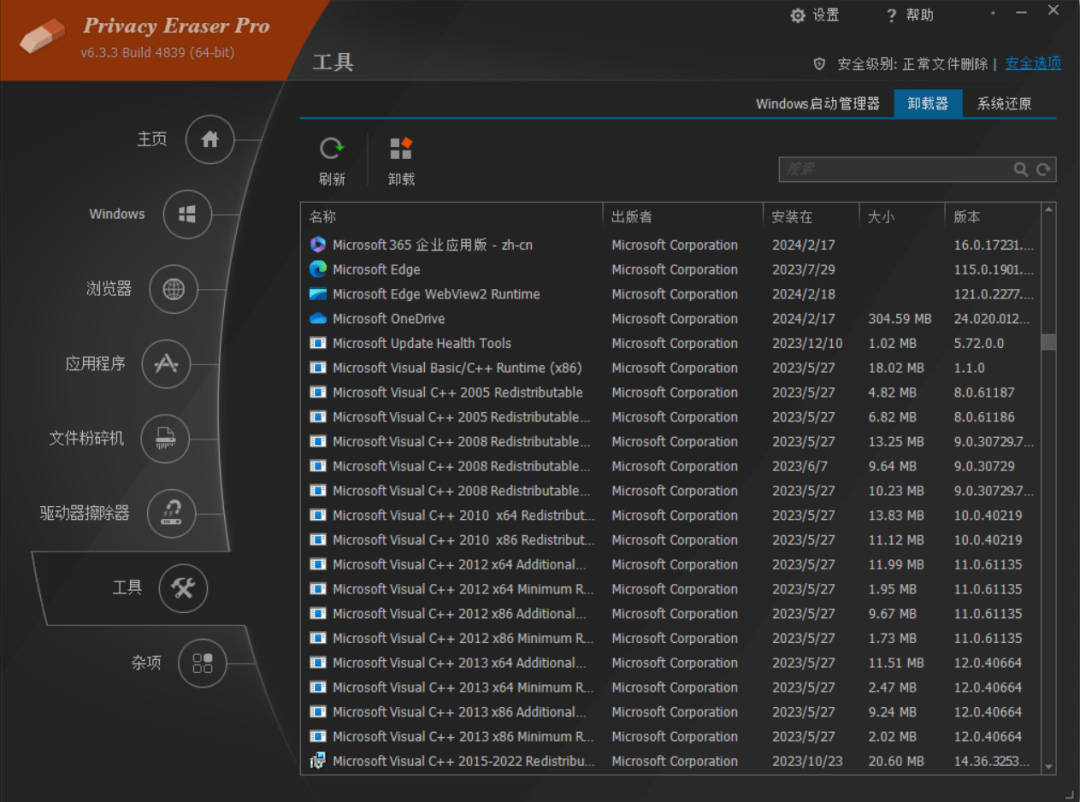 应用程序:超过 250 个免费的预配置插件,用于清理许多流行应用程序的痕迹。还可以通过制作自己的应用程序插件来扩展清理功能—允许删除任何应用程序的痕迹。