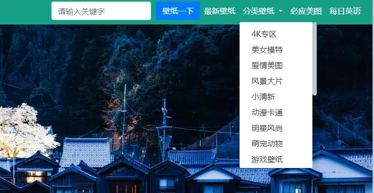 一个质量画质非常不错的壁纸网站,可以输入关键词进行搜索,也有非常多的分类:4K 专区、美女模特、爱情美图、风景大片、小清新、动漫卡通、萌宠动物、游戏壁纸等等。