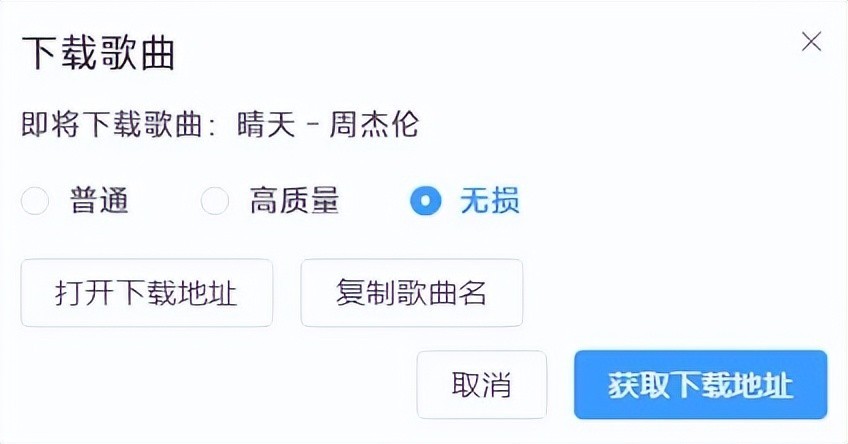根据搜索结果,点击需要下载的音乐,选择歌曲音质,有普遍、高质量和无损三种,然后获取下载地址,最后打开下载地址就会自动进入下载。
