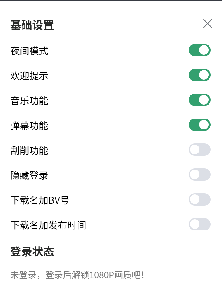 还可以设置夜间模式、音乐功能、隐藏登录等等。