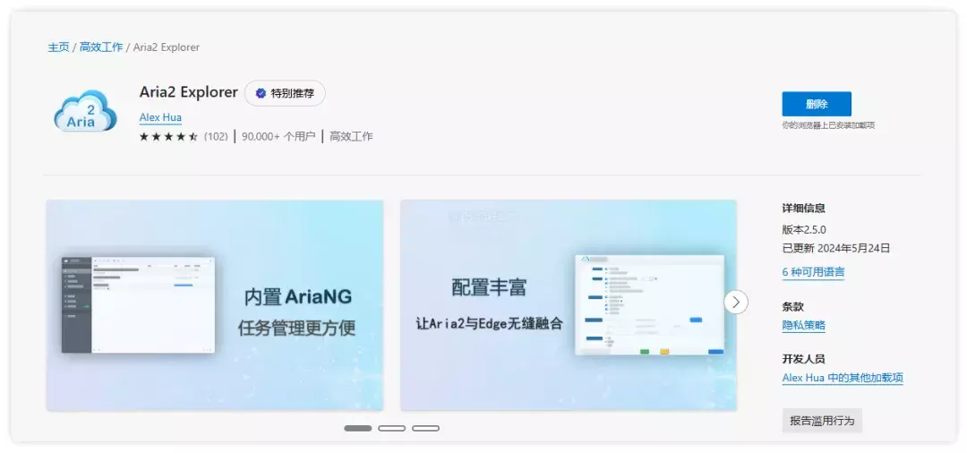 👉 2.安装「Aria2 Explorer」浏览器扩展插件,目前支持 Chrome、Edge 和其它基于 Chromium 的浏览器。