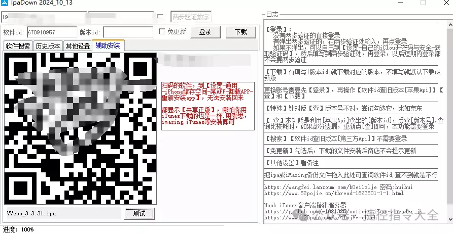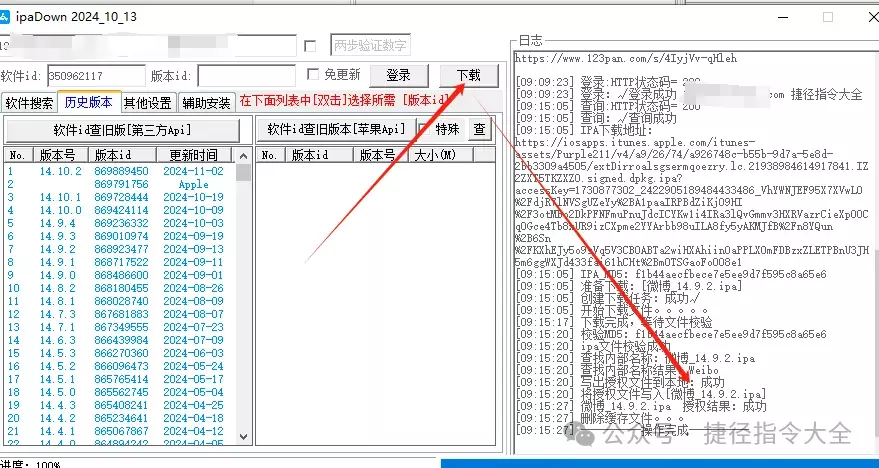 登录之后下载已经下架的应用,下架应用填写软件id 版本id请留空,且账号之前下载过,这里我的账号之前下载过一个VVebo,我来演示一下。