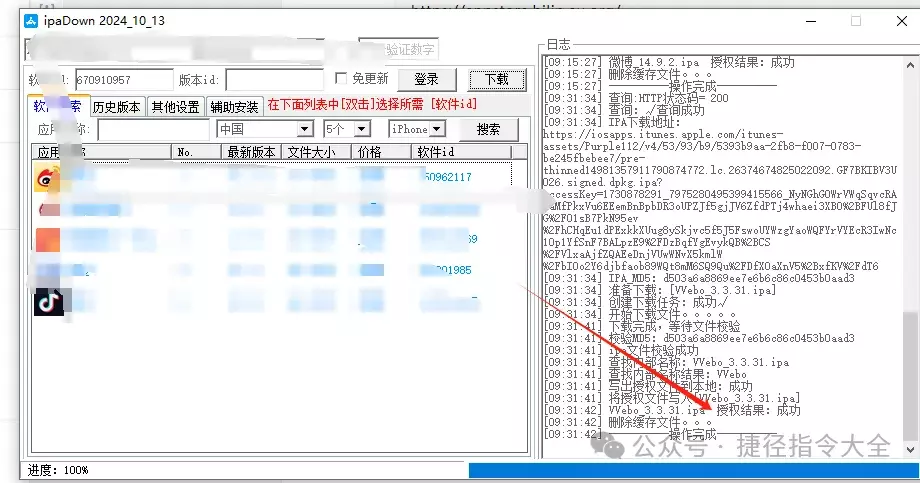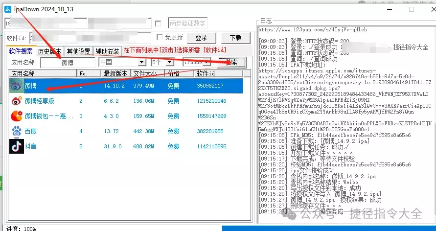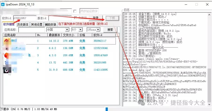 输入软件的ID之后,直接点击下载,然后等待下载成功。如前面所说,下架的软件必须你这个ID之前下载过