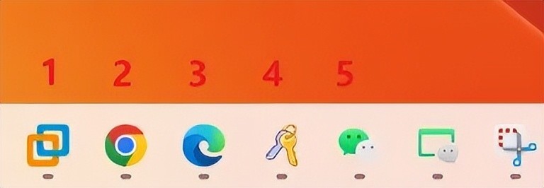 使用快捷键Win+T启用该模式,然后任务栏上的应用程序,可以通过按程序名称的第一个字母键来选择。也可以用快捷键Win+数字来启动/切换/最大化/最小化的操作。比如下图中,按Win+1键,可以启动Vmware;如果它已经打开,则为切换到它;如果它已经在使用中,则为最小化。