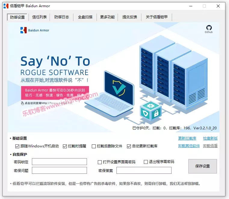 Baidun Armor,它是一款简单易用,专门拦截及屏蔽各种流氓软件,例如某些下载器、捆绑器、流氓软件安装器等等,它采用云端自动更新拦截库,可有效拦截各种不受欢迎的软件。