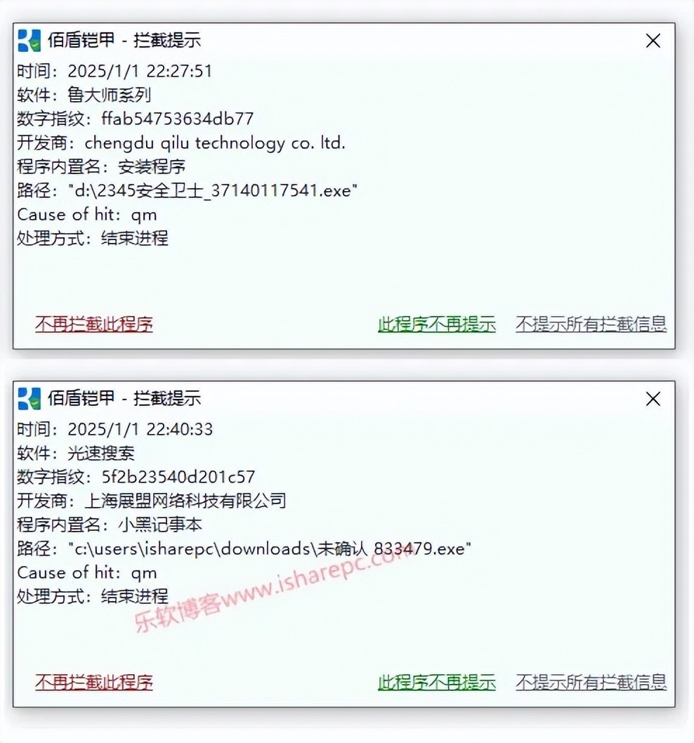 Baidun Armor运行后,会自动拦截杀死相关的程序,比如当我们尝试安装一些流氓软件时,它会自动拦截结束进程,几乎是秒拦截,就像下面这样: