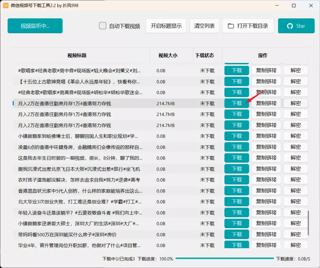 有些同学想要下载微信视频号的内容,默认情况下用微信是无法下载的。今天给大家推荐一个开源项目「wechatVideoDownload」,这款微信视频号下载工具,支持下载视频号视频、直播回放、直播流、支持获取视频下载链接、自动监听微信视频号视频。