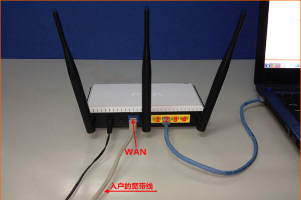 (3)、宽带是入户网线接入时:请准备1根网线,先把宽带运营商提供的入户网线插在斐讯路由器的WAN接口;再把自己准备的网线,一头连接计算机,另一头连接斐讯路由器LAN1、LAN2、LAN3、LAN4中任意一个接口与计算机。