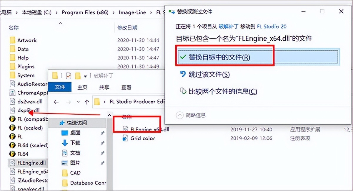 7、接着就是破解安装教程,将破解补丁下的“FLEngine_x64.dll”复制或者粘贴到软件安装目录下;